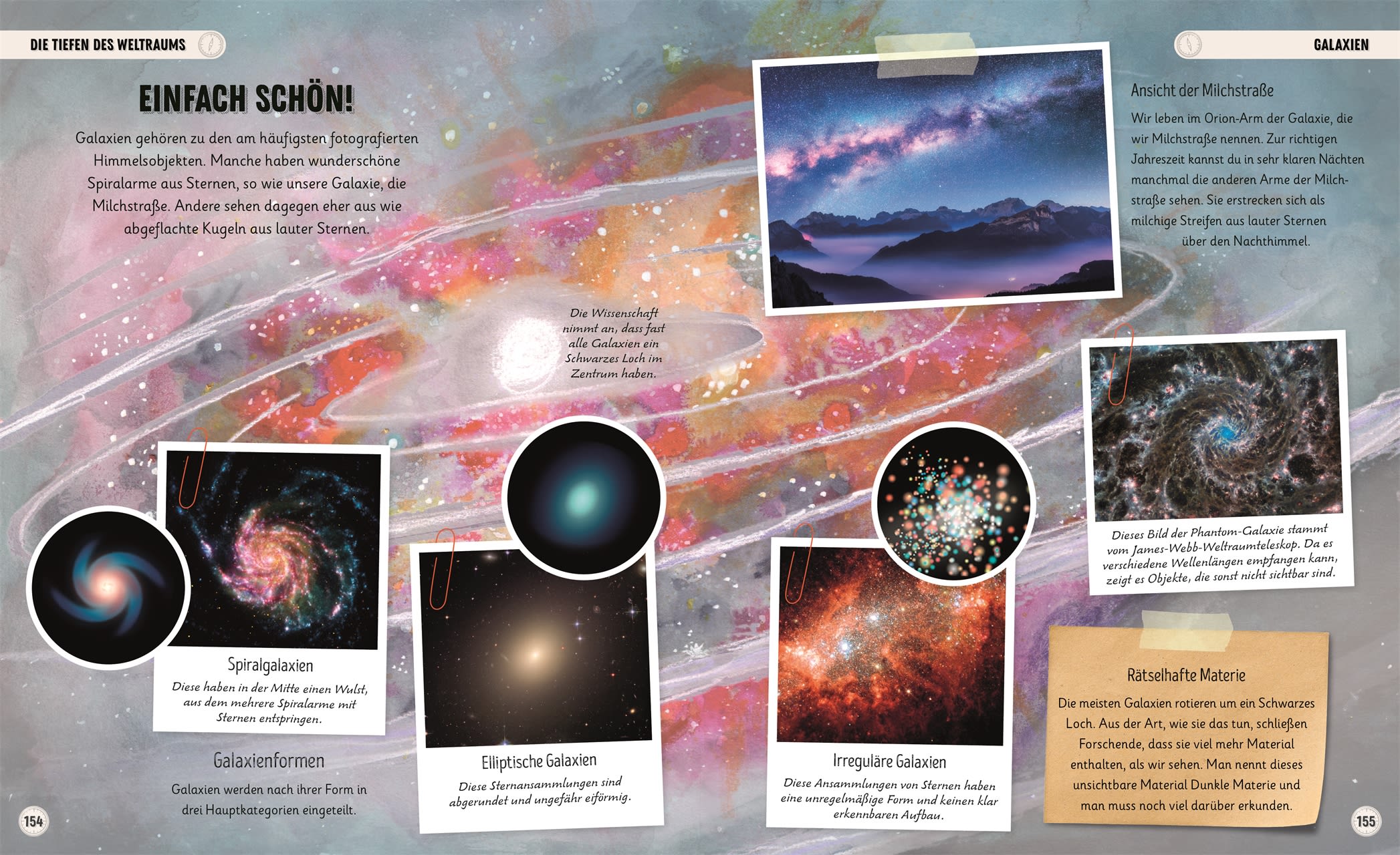 • Im Scrapbook-Look: Spektakuläre Weltall-Fotos und Illustrationen fesseln die Aufmerksamkeit und machen Lust aufs Weiterforschen