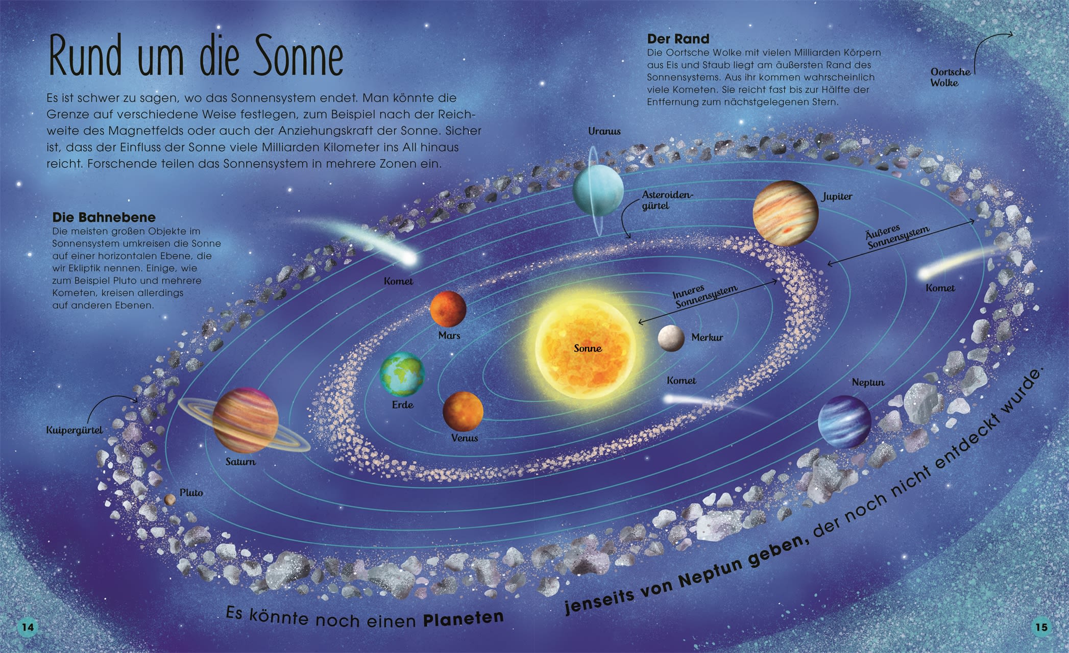 • Über 100 Einblicke in das Weltall für Kinder – von unserem Heimatplaneten Erde zu den Planeten des Sonnensystems bis zum Kuipergürtel und seinen Himmelskörpern.