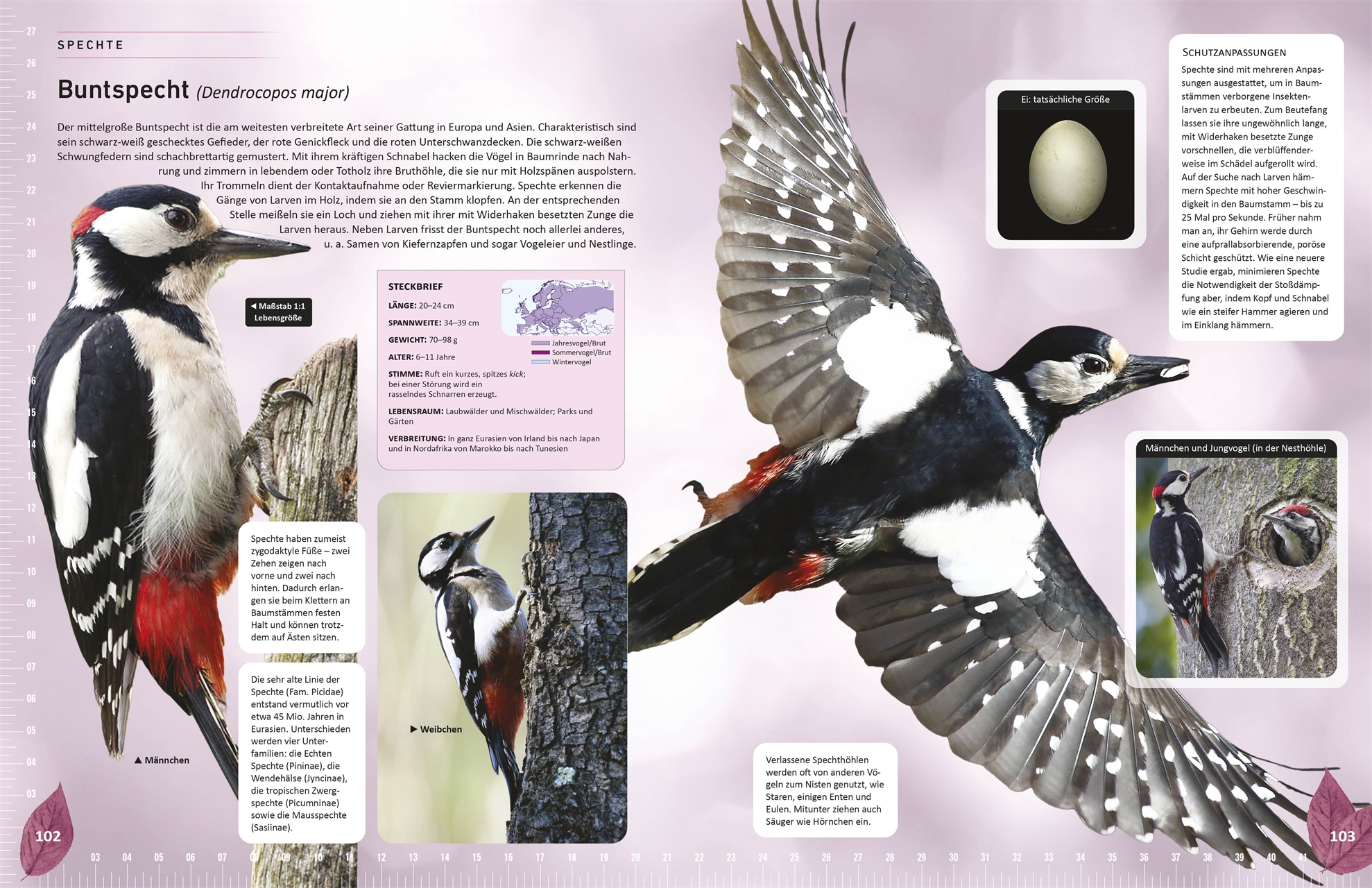• Lebensecht: Heimische Vogelarten in Originalgröße in doppelseitigen Porträts