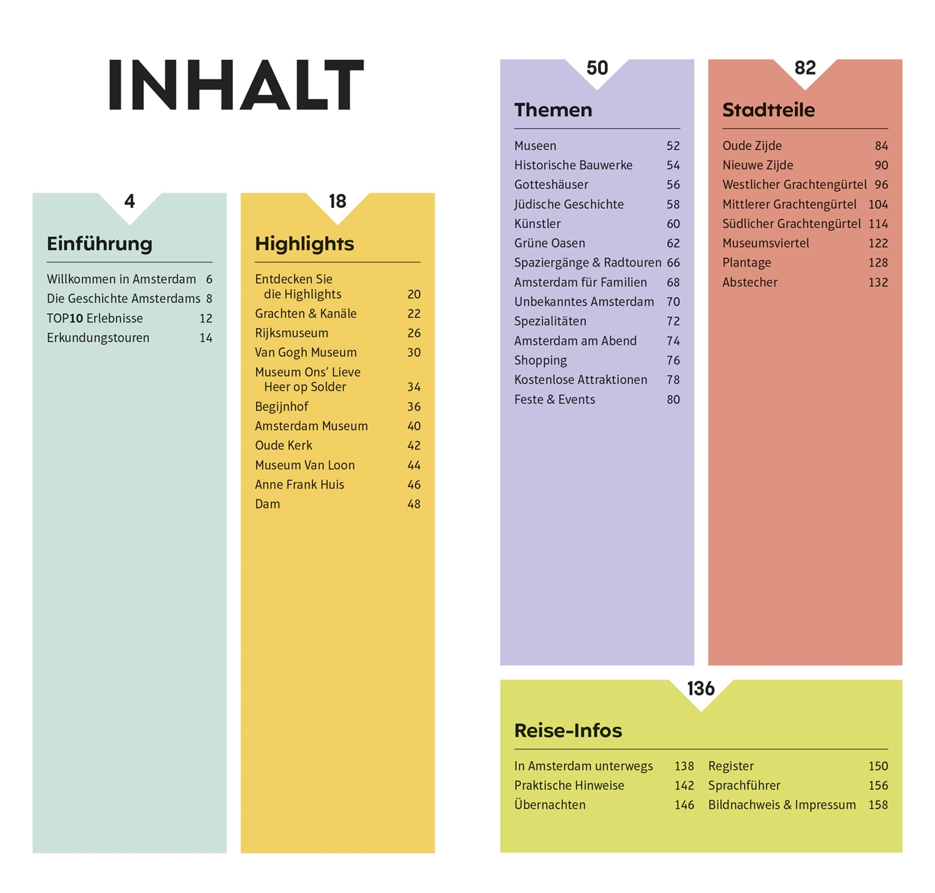 Die 10 faszinierendsten Ausstellungsstücke im Amsterdam Museum, die 10 schönsten Spaziergänge und Radtouren, die 10 spannendsten Feste & Events: Mit dem TOP10-Prinzip planen Sie Ihre Amsterdam-Reise einfach und ganz individuell. Die praktischen TOP10-Listen präsentieren alle Attraktionen auf einen Blick: von den absoluten Highlights wie dem Rijksmuseum über besondere Themen wie Orte der jüdischen Geschichte oder grüne Oasen bis zu den einzelnen Stadtteilen mit ihren Attraktionen, Restaurants und Shops. So gestalten Sie im Nu Ihre persönliche Bucket List. Außerdem erwarten Sie Empfehlungen für die TOP10-Erlebnisse, spannende Erkundungstouren und ein Streifzug durch Amsterdams faszinierende Geschichte. Vor Ort ist der leichte, kompakte TOP10-Reiseführer schnell zur Hand, bietet Ihnen wertvolle Reise-Infos und führt Sie mit detaillierten Karten und dem herausnehmbaren wetterfesten Stadtplan sicher an jedes Ziel.