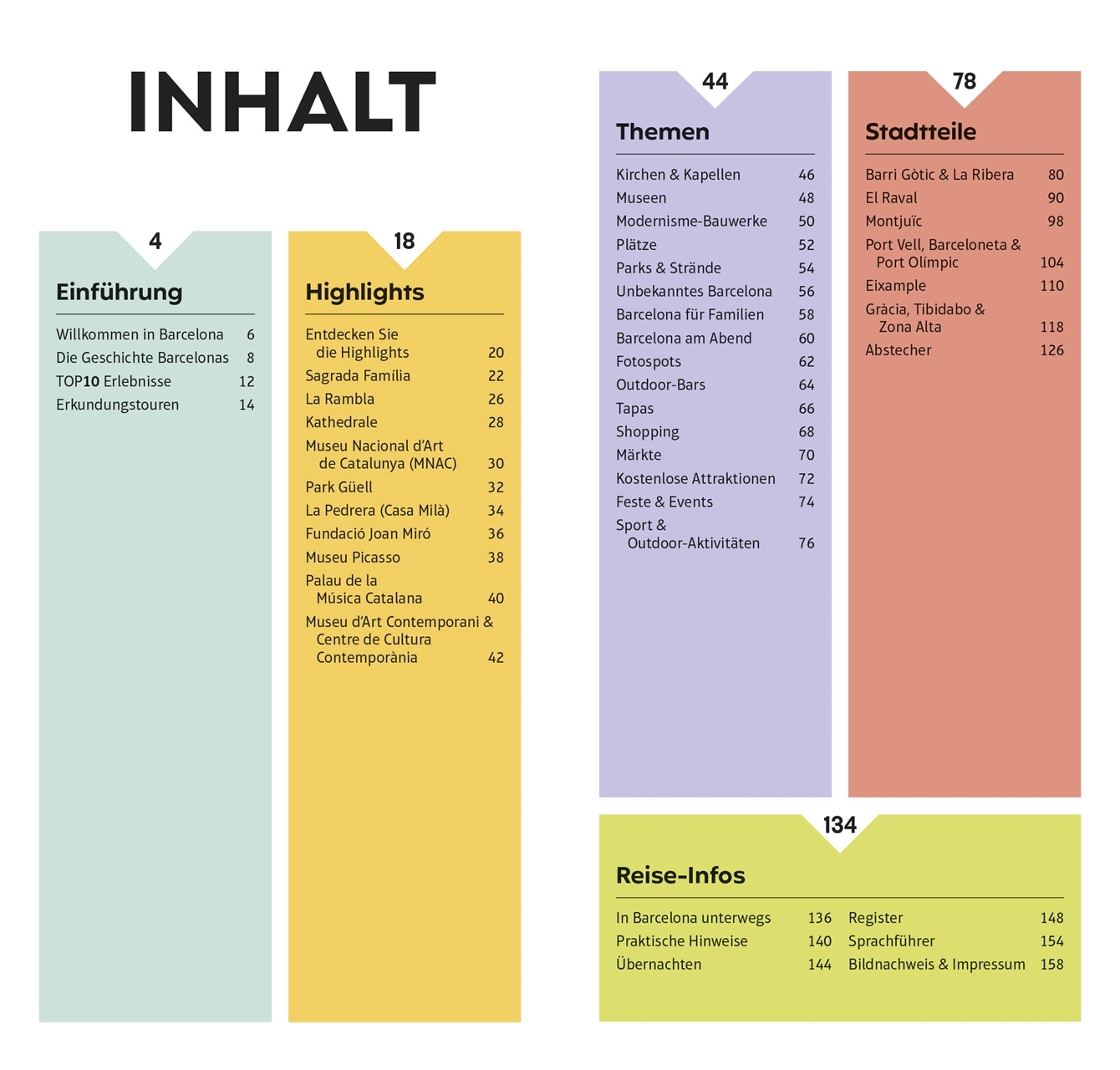 Erkunden Sie das Gassenlabyrinth des Barri Gòtic, bewundern Sie die Mosaiken der Modernisme-Häuser und genießen Sie leckere Tapas oder die Sternekreationen der katalanischen Küche: Der TOP10-Reiseführer Barcelona macht Ihren Trip in die bunte Metropole am Mittelmeer zur perfekten Reise. Ob kurzes Wochenende oder längere Städtereise – übersichtliche TOP10-Listen und stimmungsvolle Fotos führen Sie nicht nur zu den berühmten Sehenswürdigkeiten, sondern lassen Sie auch das einzigartige Flair der Stadt erleben, von Gaudís Sagrada Família bis zum Museu Picasso, vom Montjuïc bis zum Port Olímpic.