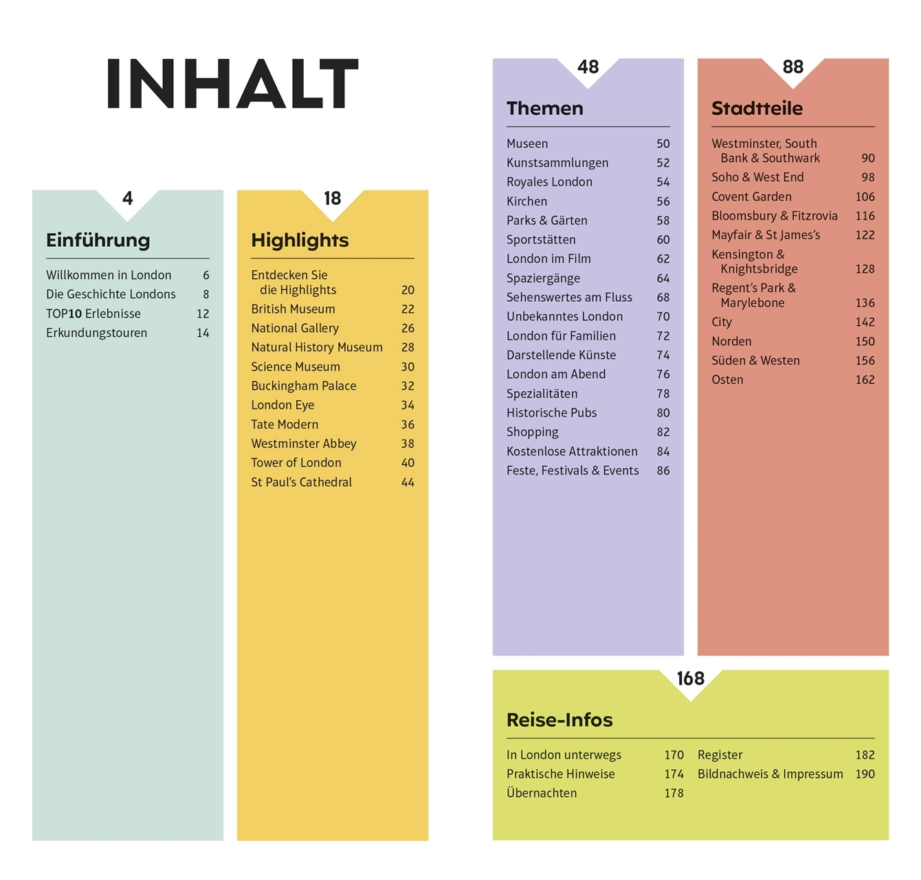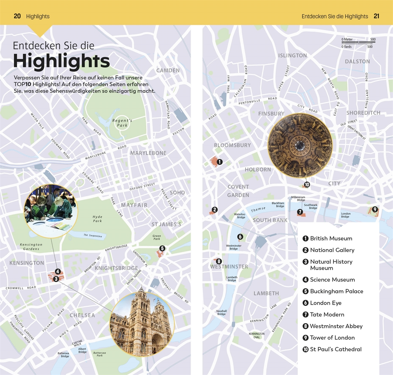 Die 10 größten Schätze im British Museum,die 10 interessantesten royalen Orte, die 10 besten Pubs: Mit dem TOP10-Prinzip planen Sie Ihre London-Reise einfach und ganz individuell. Die praktischen TOP10-Listen präsentieren alle Attraktionen auf einen Blick: von den absoluten Highlights wie Buckingham Palace über besondere Themen wie Parks & Gärten oder London für Familien bis zu den einzelnen Stadtteilen mit ihren Attraktionen, Restaurants und Shops. So gestalten Sie im Nu Ihre persönliche Bucket List. Außerdem erwarten Sie Empfehlungen für die TOP10-Erlebnisse, spannende Erkundungstouren und ein Streifzug durch Londons faszinierende Geschichte. Vor Ort ist der leichte, kompakte TOP10-Reiseführer schnell zur Hand, bietet Ihnen wertvolle Reise-Infos und führt Sie mit detaillierten Karten und dem herausnehmbaren wetterfesten Stadtplan sicher an jedes Ziel.
