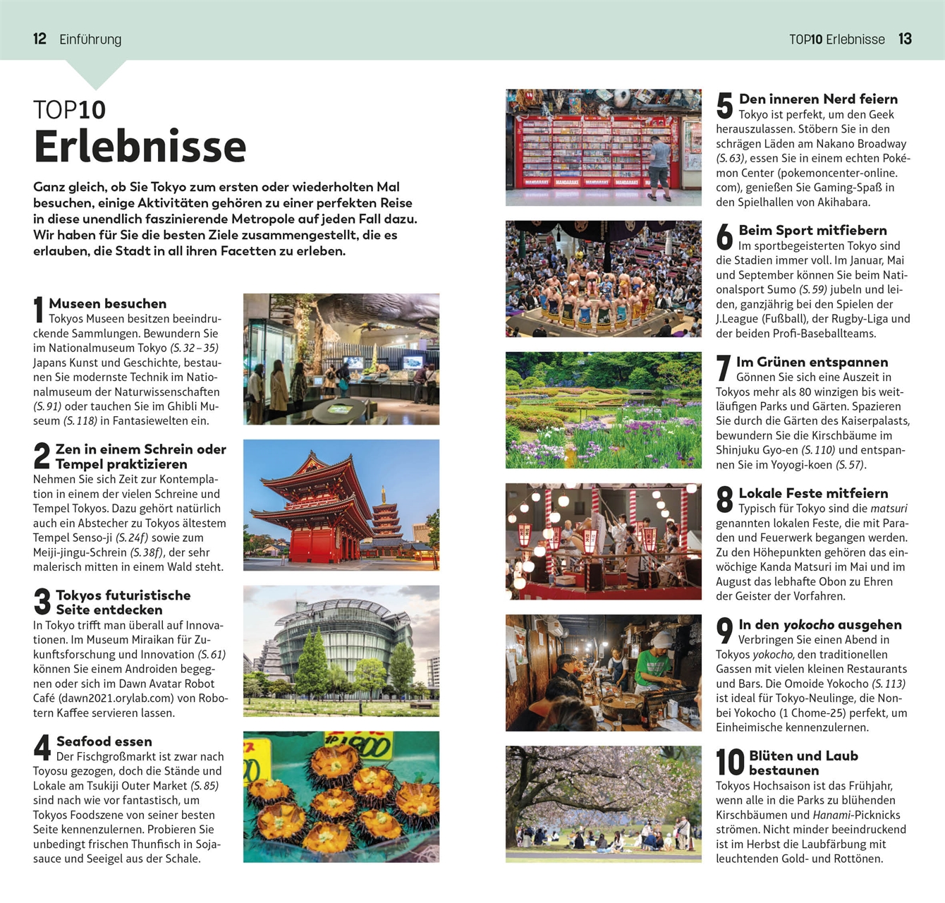 Genießen Sie Tokyos Foodszene auf dem Tsukiji Outer Market, sammeln Sie Kraft am würdevollen Meiji-jingu-Schrein und bestaunen Sie das atemberaubende Nebeneinander von Tradition und Moderne: Der TOP10-Reiseführer Tokyo macht Ihren Trip in Japans faszinierende Hauptstadt zur perfekten Reise. Ob kurzes Wochenende oder längere Städtereise – übersichtliche TOP10-Listen und stimmungsvolle Fotos führen Sie nicht nur zu den berühmten Sehenswürdigkeiten, sondern lassen Sie auch das einzigartige Flair der Stadt erleben, vom Senso-ji-Tempel bis Nihonbashi, vom Ueno-Park bis nach Shinjuku.