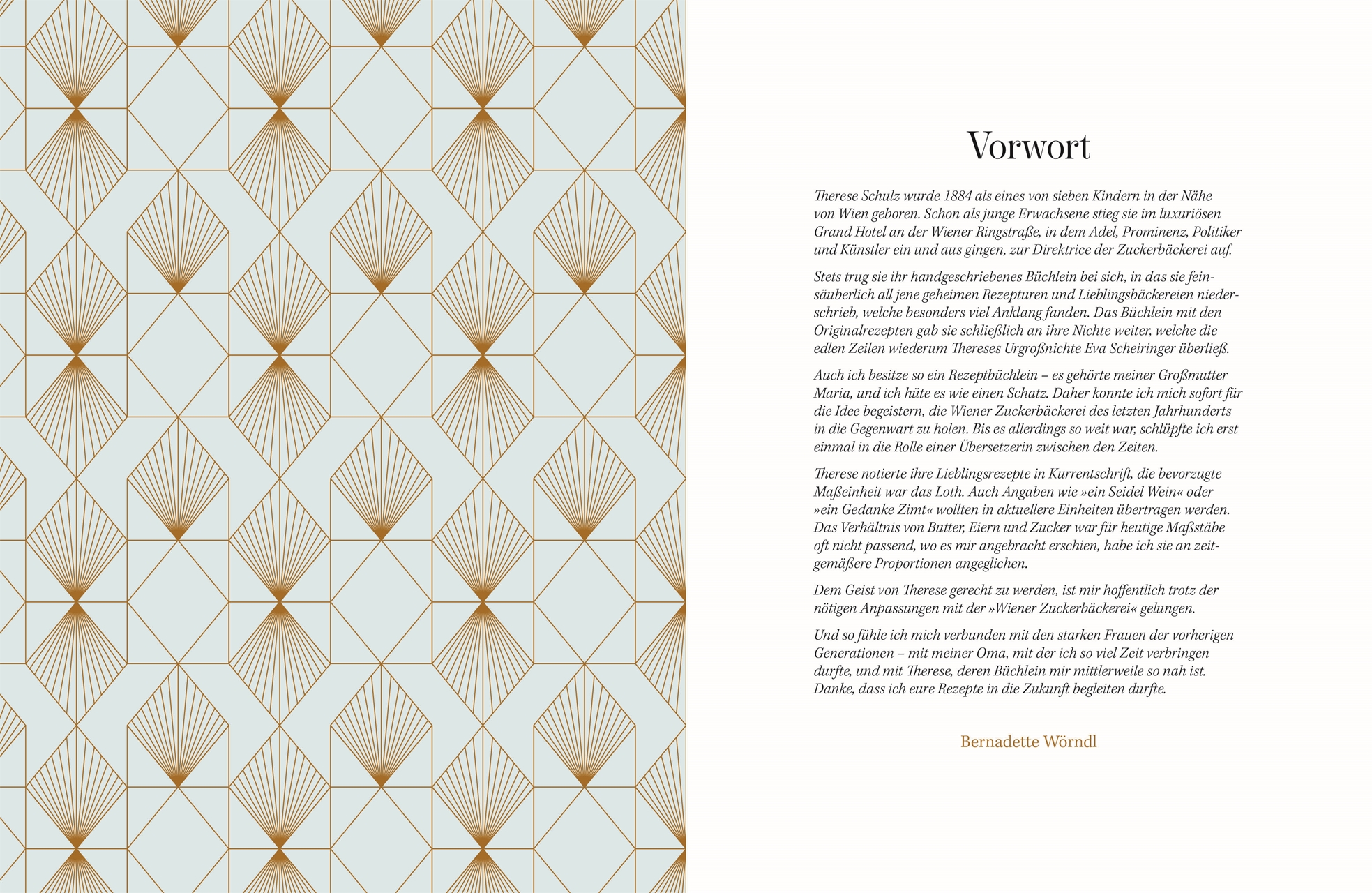 Die Kaffeehäuser im Wien des frühen 20. Jahrhunderts waren das zweite Wohnzimmer für Kunstschaffende, Intellektuelle und Süßspeisen-Liebhaber aller Art. Hier wurde entspannt, diskutiert und vor allem genossen! Inmitten dieses mondänen Flairs verwöhnte die Zuckerbäckerin Therese Schulz die Gäste des ehemaligen Wiener Grand Hotels mit ihrem süßen Handwerk – und hat ihre Rezepte dabei akribisch dokumentiert. Hundert Jahre später finden Familienangehörige diese Aufzeichnungen auf dem Dachboden wieder und geben sie in die kundigen Hände von Rezeptentwicklerin Bernadette Wörndl, die sie für uns in die heutige Zeit übersetzt.