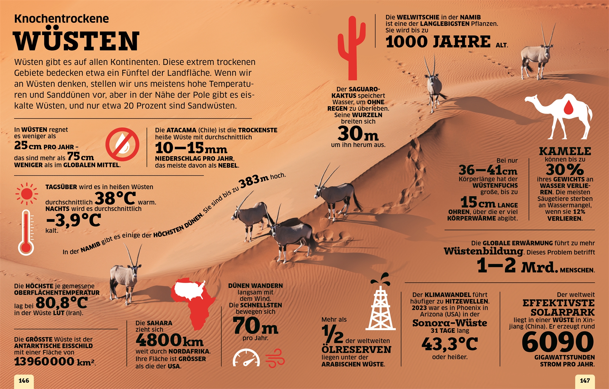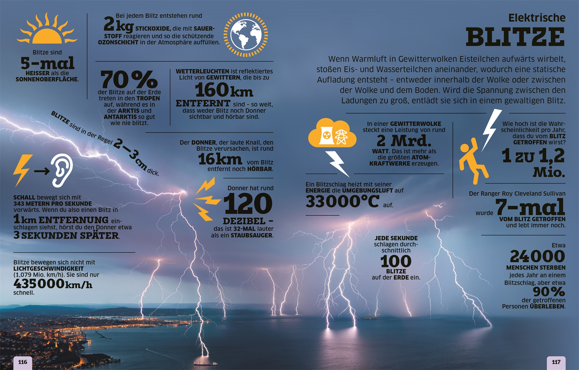 • Wissen visuell: Infografiken, Daten und Statistiken reihen sich um beeindruckende Illustrationen und zeigen eindrucksvolle Phänomene