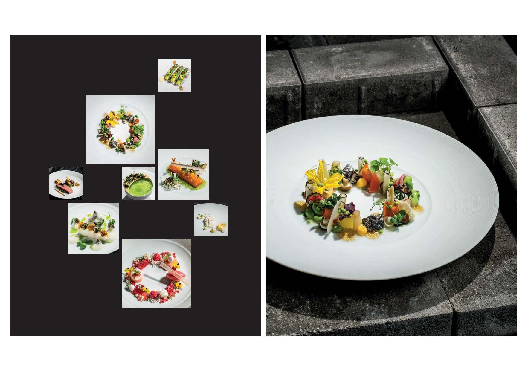 • 7 Menüs, 56 exquisite Gänge und 28 Auszugsgerichte, die die Einzigartigkeit seiner Küche zeigen