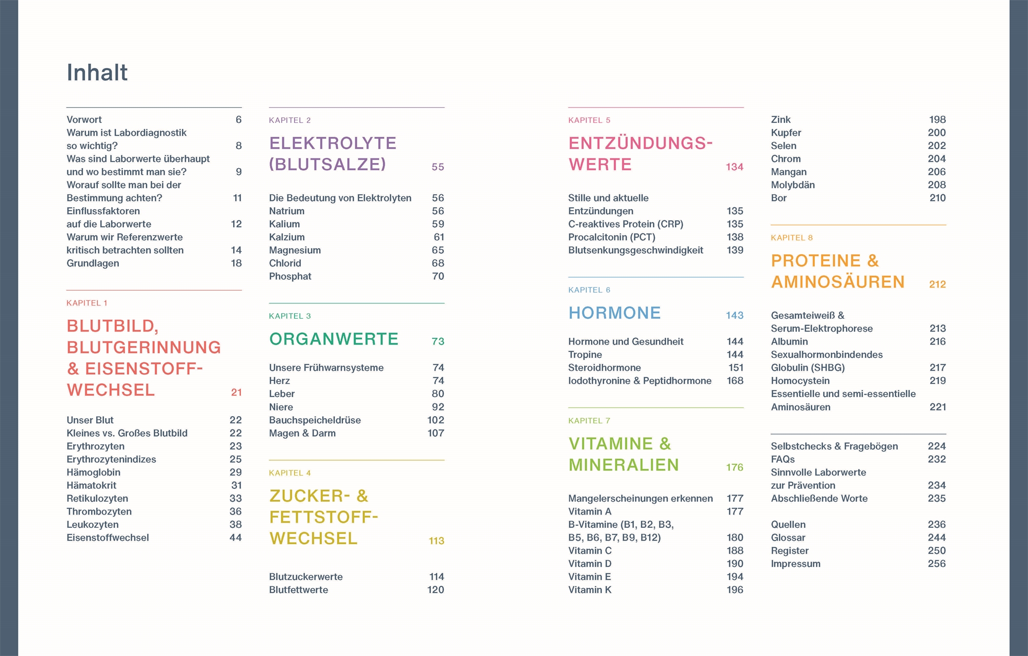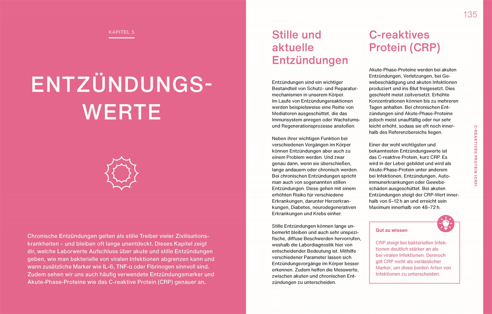 • Überblick über alle zentralen Labor- und Blutwerte: von Organ- und Entzündungswerten bis zu Hormonen und Vitaminen
