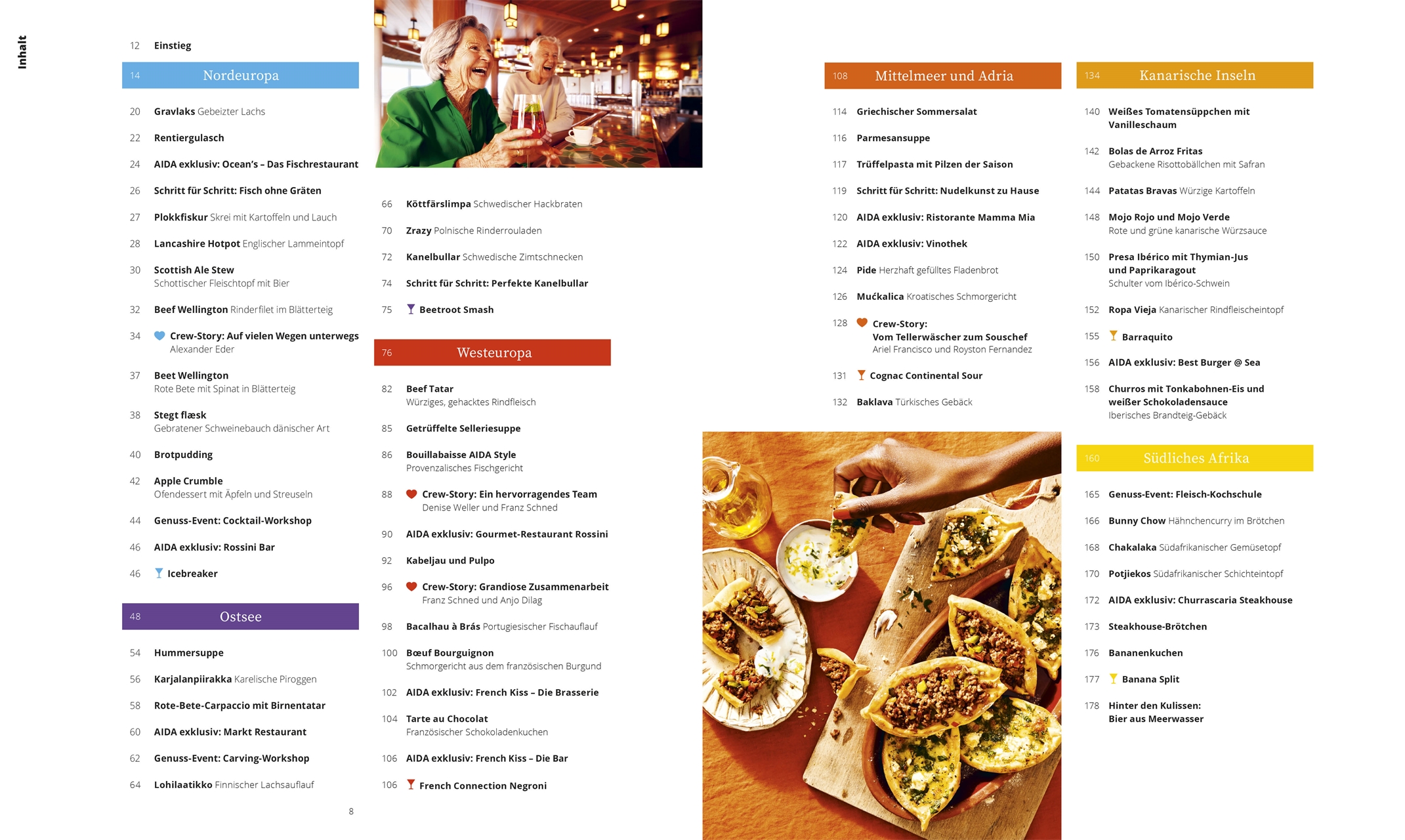 Herrlich duftende Zimtschnecken aus Schweden, Tapas auf den Kanaren oder thailändisches Pho Bo: Nach einem Urlaub bleiben die Köstlichkeiten der verschiedenen Länder oft für immer mit den Erlebnissen jener Zeit verknüpft. Wer mit AIDA unterwegs ist, kann sich in den Restaurants an Bord und an Land auf unzählige solcher Genussmomente freuen. Begeben Sie sich mit AIDA auch zu Hause auf eine große kulinarische Reise – und holen Sie sich beim Nachkochen der mehr als 90 klassischen, ausgefallenen und köstlichen Rezepte das Aroma der Welt auf den Teller. So schmeckt AIDA!
