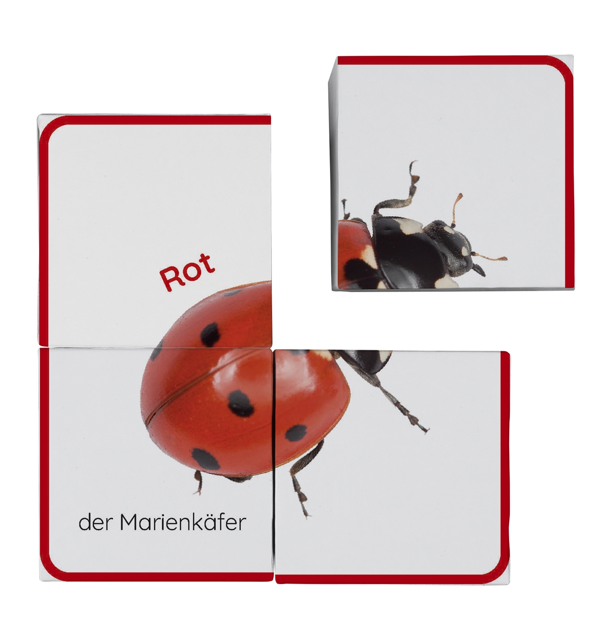 Welche Ausschnitte gehören zusammen? Ist das eine Ecke von oben oder unten? Nein, das passt ja gar nicht zum Marienkäfer! Würfel für Würfel kommen die Kinder dem fertigen Bild näher – und trainieren dabei spielerisch ihr räumliches Denken, ihre Geduld und ihre Hand-Auge-Koordination. Und schon ist der lila Luftballon komplett!