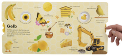 Ob rotes Feuerwehrauto, pinker Flamingo, gelbe Badeente oder grüne Blätter – in diesem farbenfrohen Pappbilderbuch warten jede Menge tolle Überraschungen auf die Kleinen. Auf jeder Seite animieren ein Guckloch und eine Drehscheibe zum Mitmachen. Das Rädchen will so lange von den Kinderhänden gedreht werden, bis das passende Bild gefunden ist. Die richtige Zuordnung freut Kinder und motiviert sie zur weiteren Beschäftigung. So lernen die Kinder im Stil der beliebten "Erstes Lernen"-Reihe spielerisch Farben kennen.