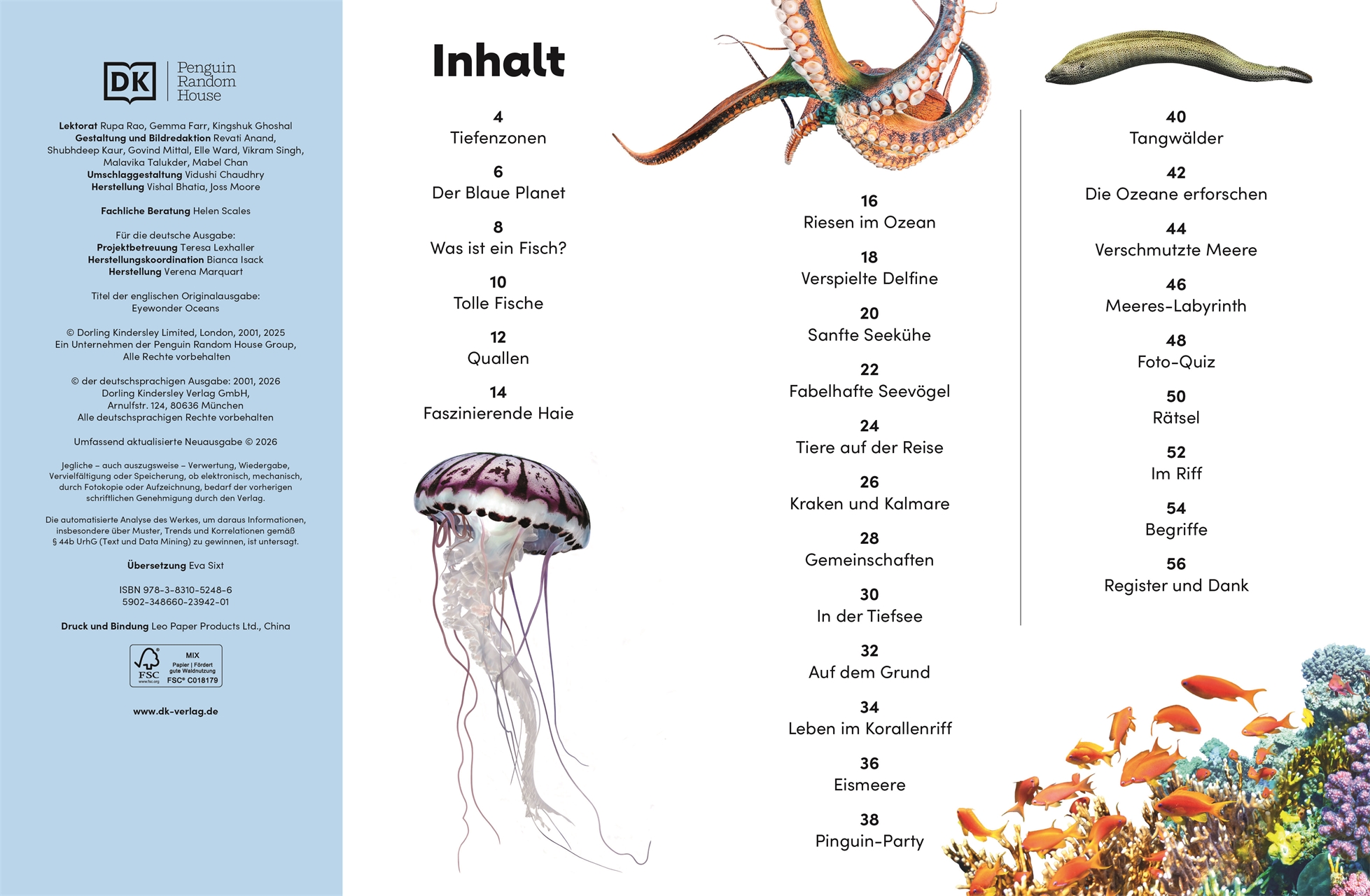 Wie tief können Pinguine tauchen? Was ist der Unterschied zwischen Ozeanen und Meeren? Und können Fische eigentlich unter Wasser atmen? Diese und viele weitere Fragen beantwortet das spannende Kindersachbuch über das Lieblingsthema Meeresbiologie – leicht verständlich und voller beeindruckender Bilder.