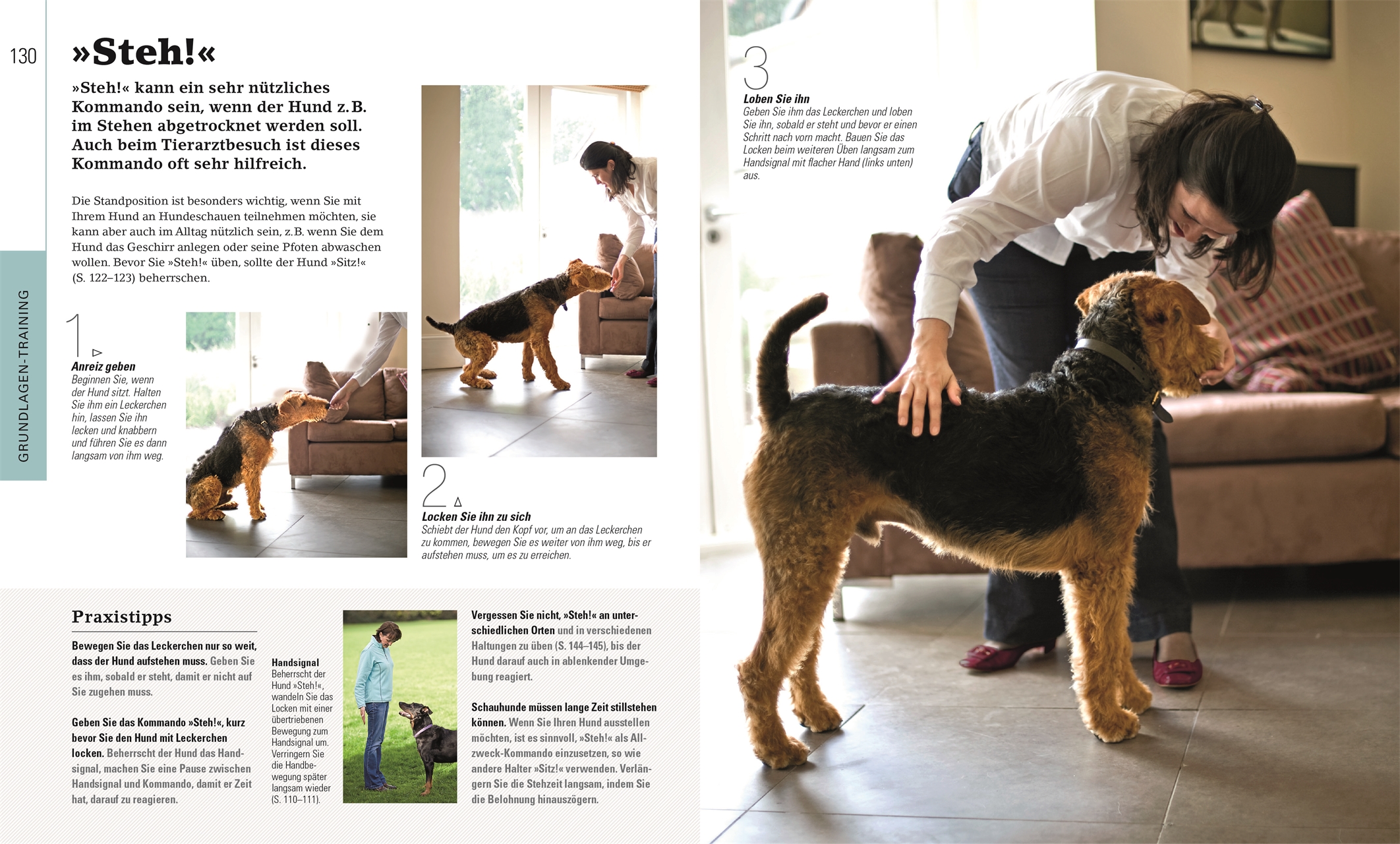 • Hundetraining in 6 Kapiteln: Auswahl des Hundes; Beziehungsaufbau; Grundlagen-Training; Aufbau-Training; Erziehungsprobleme mit Lösungsansätzen; Sport & Spiel