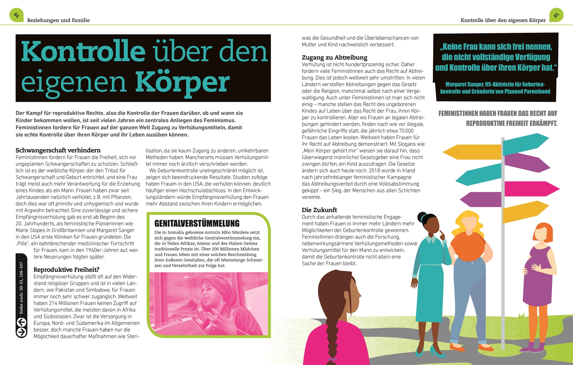 Vom Frauenwahlrecht über MeToo und Womanismus bis zur Lohnlücke – wer mehr über die zentralen feministischen Themen unserer Gesellschaft wissen möchte, erfährt dies in den fünf großen Kapiteln: