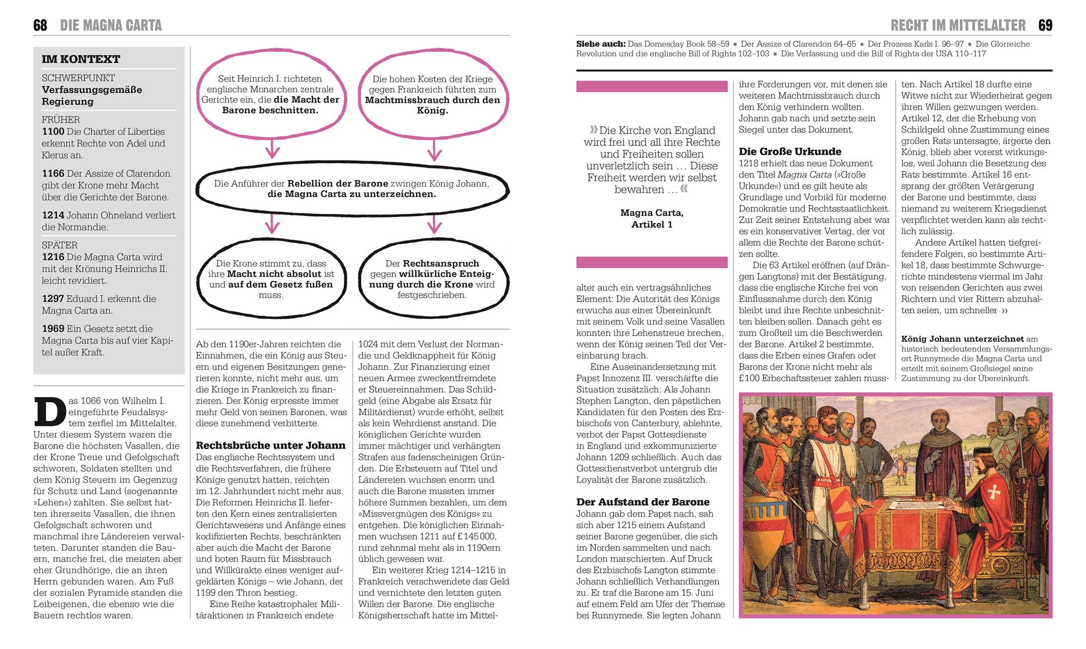 • Die Geschichte der Rechtswissenschaften in sechs großen Kapiteln: Die Ursprünge des Rechts, Recht im Mittelalter, Eroberung und Aufklärung, der Vormarsch der Rechtsstaatlichkeit, eine neue Weltordnung und Recht in der heutigen Zeit.