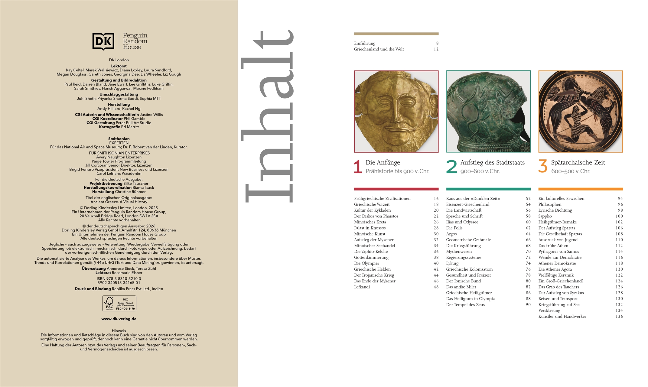 Begeben Sie sich auf eine visuelle Reise durch das antike Griechenland! In fesselnden Details beleuchtet dieser prächtige Band 3.000 Jahre griechische Geschichte, von der minoischen Kultur über den Aufstieg der Stadtstaaten Athen und Sparta bis zum Reich Alexanders des Großen.