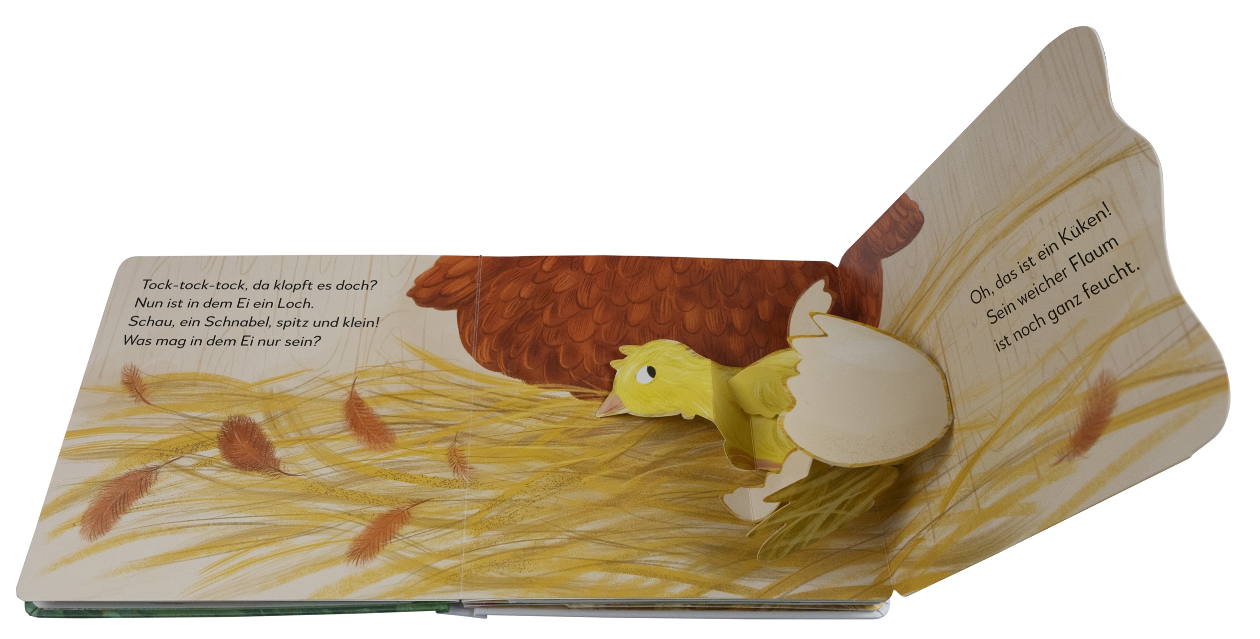 Aus einem Ei schlüpft ein flauschiges Küken und wächst zu einem stolzen Huhn heran – all das können Kinder ab 2 Jahren in diesem einzigartigen Pop-up-Buch erleben! Fünf stabile Klappen und Pop-ups zeigen spielerisch die Entwicklung eines Kükens. Fröhliche Reime erklären das Thema kindgerecht und unterhaltsam. Das interaktive Kinderbuch bringt kleinen Entdecker*innen ab zwei Jahren die heimische Natur auf besonders anschauliche Weise nahe und eignet sich ganz nebenbei perfekt zum Feinmotorik üben.