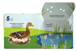 „Es knackt – hurra, wer schlüpft denn da?“ In diesem fantasievollen Klappenbuch mit Gucklöchern wird alles gezählt, was es auf den Seiten zu entdecken gibt: Wie viele Eier hat das Huhn im Nest und wie viele Küken schlüpfen heraus? Wie viele Eier brütet die Enten-Mama aus und wie viele Augen schauen durch die Klappe?