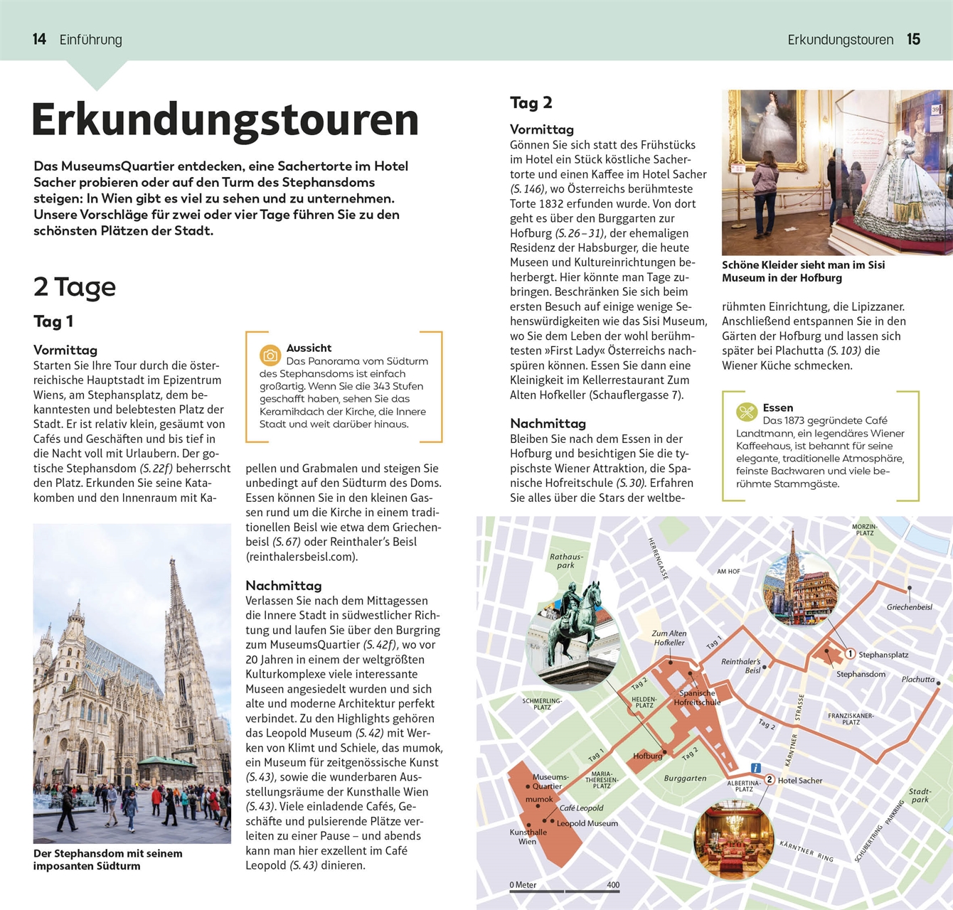 Die 10 prächtigsten Palais & historische Gebäude, die 10 schönsten Parks & Gärten, die 10 besten Kaffeehäuser: Mit dem TOP10-Prinzip planen Sie Ihre Wien-Reise einfach und ganz individuell. Die praktischen TOP10-Listen präsentieren alle Attraktionen auf einen Blick: von den absoluten Highlights wie dem Stephansdom über besondere Themen wie Wiens „Unterwelt“ oder Wien am Abend bis zu den einzelnen Stadtteilen mit ihren Attraktionen, Restaurants und Shops. So gestalten Sie im Nu Ihre persönliche Bucket List. Außerdem erwarten Sie Empfehlungen für die TOP10-Erlebnisse, spannende Erkundungstouren und ein Streifzug durch Wiens faszinierende Geschichte. Vor Ort ist der leichte, kompakte TOP10-Reiseführer schnell zur Hand, bietet Ihnen wertvolle Reise-Infos und führt Sie mit detaillierten Karten und dem herausnehmbaren wetterfesten Stadtplan sicher an jedes Ziel.