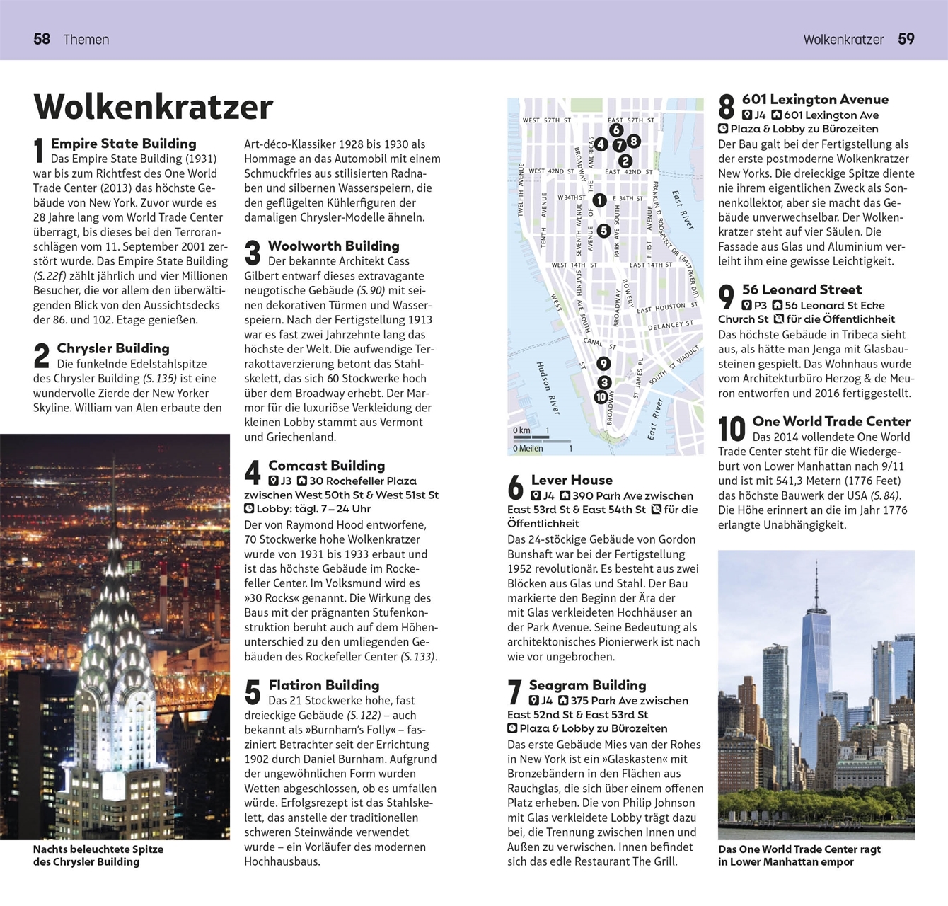 Die 10 eindrucksvollsten Wolkenkratzer, die 10 besten Musikclubs, die 10 renommiertesten Museen: Mit dem TOP10-Prinzip planen Sie Ihre New-York-Reise einfach und ganz individuell. Die praktischen TOP10-Listen präsentieren alle Attraktionen auf einen Blick: von den absoluten Highlights wie dem Empire State Building über besondere Themen wie New York für Familien oder die LGBTQ+ Community bis zu den einzelnen Stadtteilen mit ihren Attraktionen, Restaurants und Shops. So gestalten Sie im Nu Ihre persönliche Bucket List. Außerdem erwarten Sie Empfehlungen für die TOP10-Erlebnisse, spannende Erkundungstouren und ein Streifzug durch New Yorks faszinierende Geschichte. Vor Ort ist der leichte, kompakte TOP10-Reiseführer schnell zur Hand, bietet Ihnen wertvolle Reise-Infos und führt Sie mit detaillierten Karten und dem herausnehmbaren wetterfesten Stadtplan sicher an jedes Ziel.