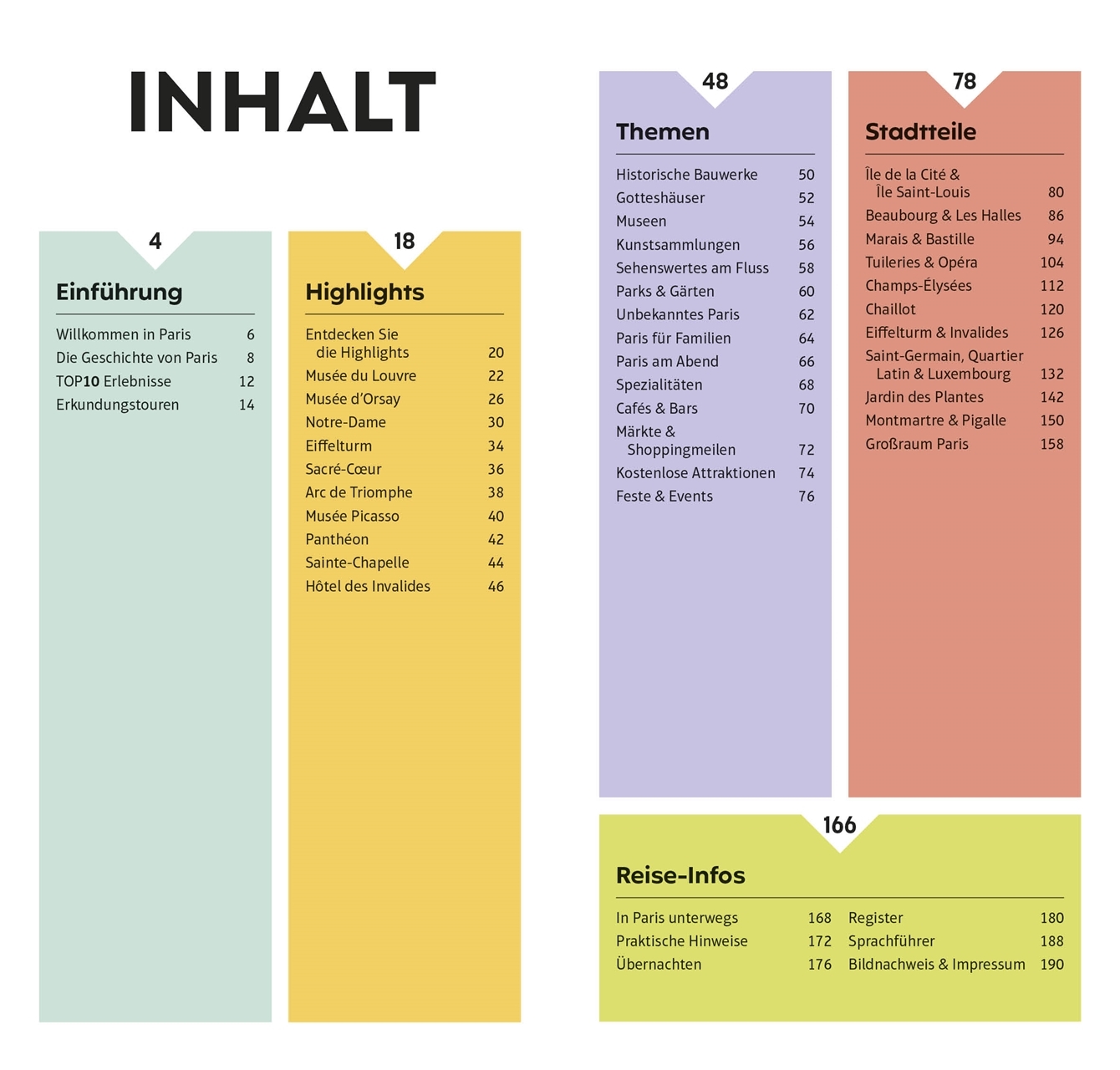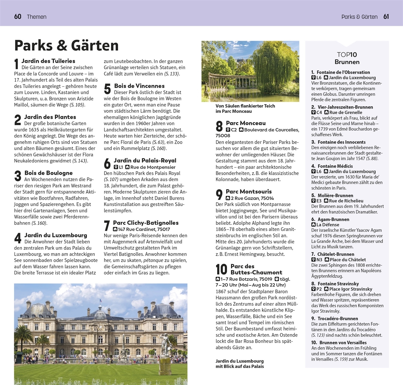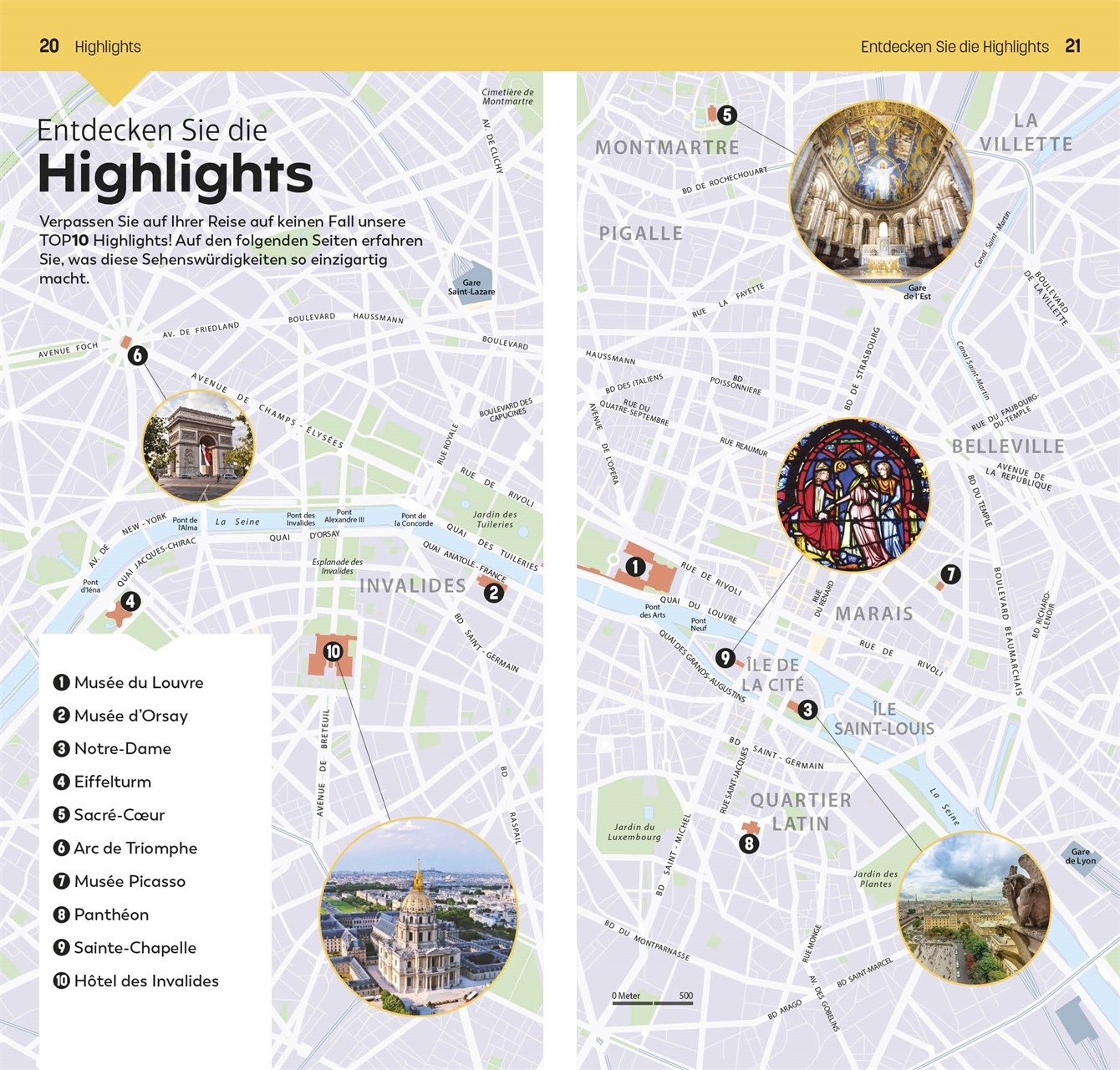 Die 10 schönsten Parks & Gärten, die 10 berühmtesten Kunstwerke im Louvre, die 10 besten Restaurants rund um die Champs-Élysées: Mit dem TOP10-Prinzip planen Sie Ihre Paris-Reise einfach und ganz individuell. Die praktischen TOP10-Listen präsentieren alle Attraktionen auf einen Blick: von den absoluten Highlights wie der Kathedrale Notre-Dame über besondere Themen wie Sehenswertes am Fluss oder Paris für Familien bis zu den einzelnen Stadtteilen mit ihren Attraktionen, Restaurants und Shops. So gestalten Sie im Nu Ihre persönliche Bucket List. Außerdem erwarten Sie Empfehlungen für die TOP10-Erlebnisse, spannende Erkundungstouren und ein Streifzug durch die faszinierende Geschichte von Paris. Vor Ort ist der leichte, kompakte TOP10-Reiseführer schnell zur Hand, bietet Ihnen wertvolle Reise-Infos und führt Sie mit detaillierten Karten und dem herausnehmbaren wetterfesten Stadtplan sicher an jedes Ziel.