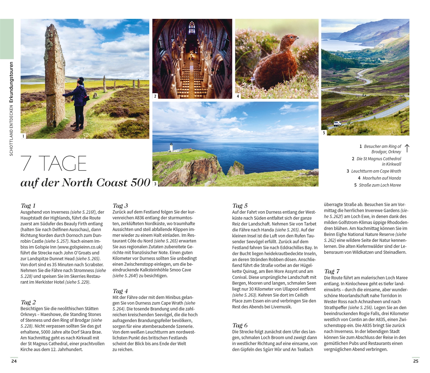 Die raue Schönheit des schottischen Hochlands erkunden, auf den Spuren von Harry Potter im Jacobite Steam Train reisen oder sich dem lebendigen Treiben Edinburghs hingeben: Lassen Sie sich vom Vis-à-Vis Reiseführer Schottland zu den wichtigsten Sehenswürdigkeiten und beeindruckendsten Orten des Landes führen. Mit fundiertem Expertenwissen, inspirierenden Fotos und detaillierten Karten stellt Ihnen der übersichtliche Reiseführer die schönsten Regionen und Städte Schottlands mit allen Attraktionen vor – von den schottischen Highlands und Loch Ness über Zentralschottlands sanfte Täler und Sandstrände bis Südschottland mit seinen Herrenhäusern und Moorlandschaften. Nicht zu vergessen Schottlands größte Stadt Glasgow und die faszinierende Hauptstadt Edinburgh sowie die über 100 Inseln, wie z.B. Shetland oder die Isle of Skye. Ob 2 Wochen oder 5 Tage auf den Äußeren Hebriden oder eine Woche auf der North Coast 500 – hier finden Sie passende Reiserouten und Empfehlungen für Aktivitäten, Restaurants und Hotels, um das Beste aus Ihrem Schottland-Urlaub herauszuholen!