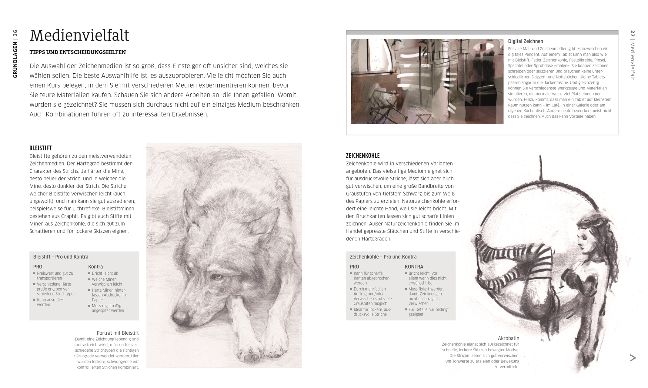 • Vom richtigen Zeichenwerkzeug bis zum Zeichnen von Porträts, Landschaften, Tieren und mehr
