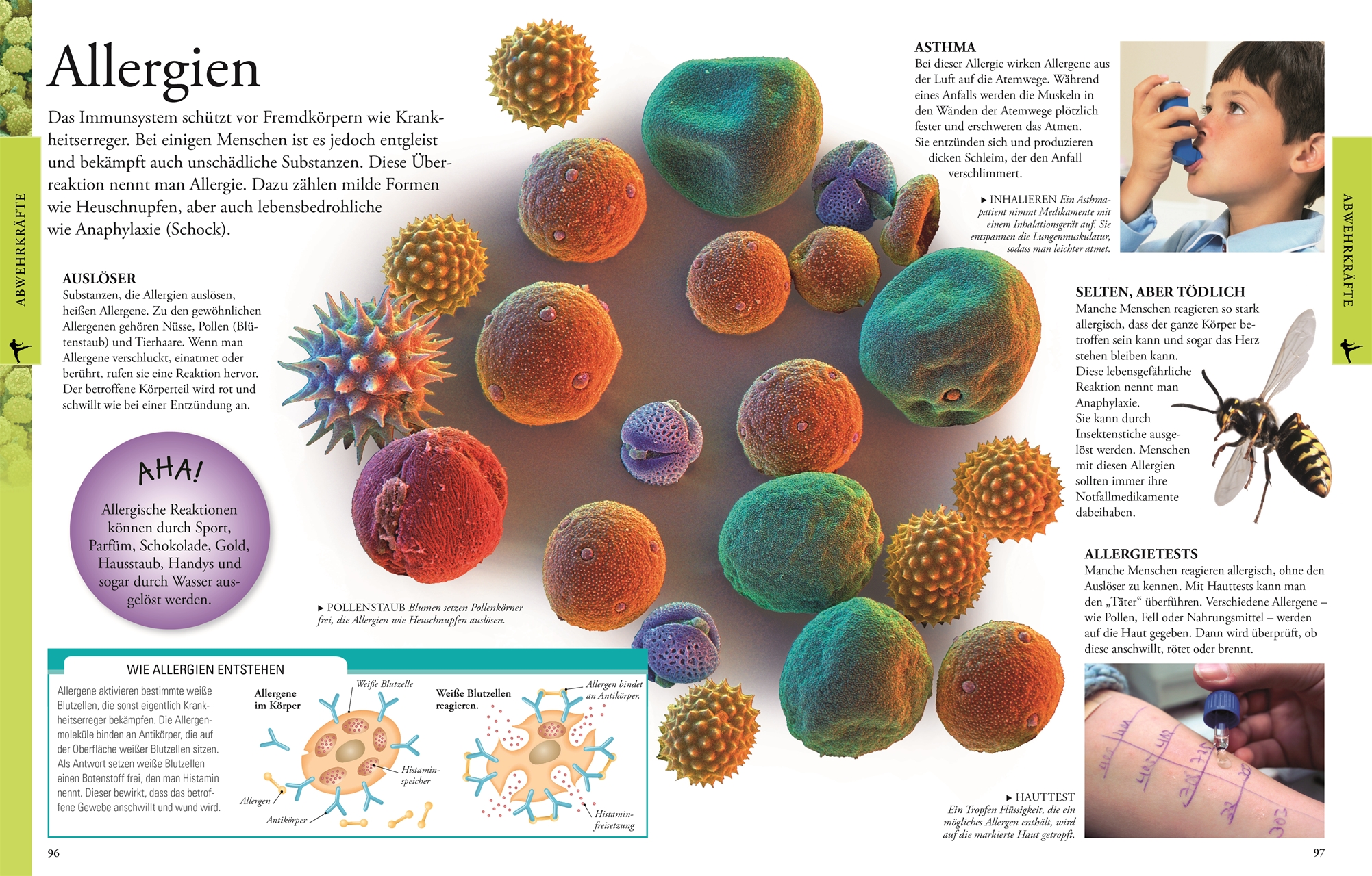 Durch die unterschiedliche farbliche Kennzeichnung der Kapitel ist ein schnelles Nachschlagen möglich. Spektakuläre und zum Teil großformatige Fotos zeigen viele anatomische Details und machen das Buch visuell ansprechend. Alle Informationen sind altersgerecht aufbereitet und selbst schwierige Sachverhalte werden auf leicht verständliche Weise erklärt. Zahlreiche Infokästen vertiefen das Wissen noch zusätzlich. Faszinierende Zahlen und Fakten lockern die Texte zwischendurch auf. Eine perfekte Ergänzung zum Biologieunterricht und ideal für Referate!